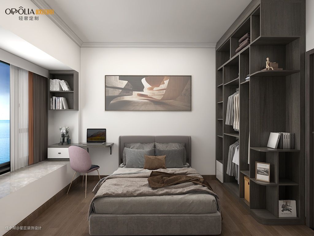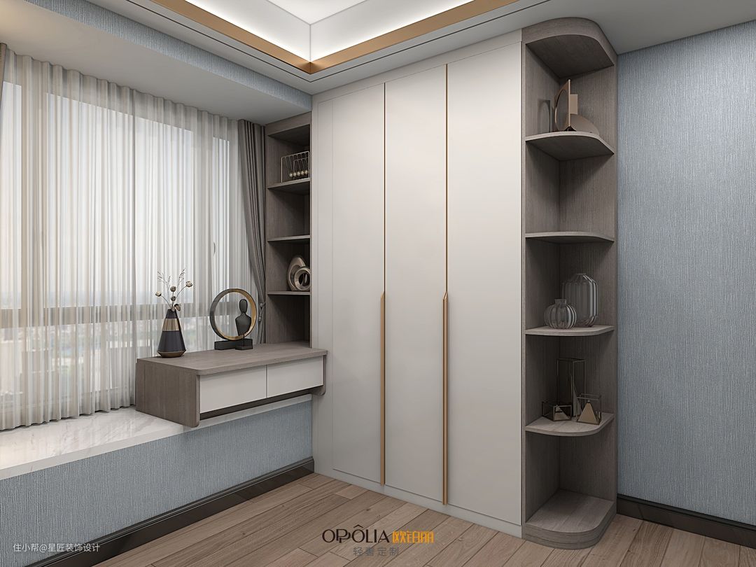 飘窗改柜是大多用户为了增加卧室收纳空间而做的设计,可以根据用户需求自定义,造型、公用、开合方式等。上开设计的飘窗柜可以存储棉被等大型物件,而日常我们袜子、围巾等小物件则可以设计成抽屉摆放。让衣柜减少摆放空间从而腾出更多的空间放置衣服,来解决了收纳的问题