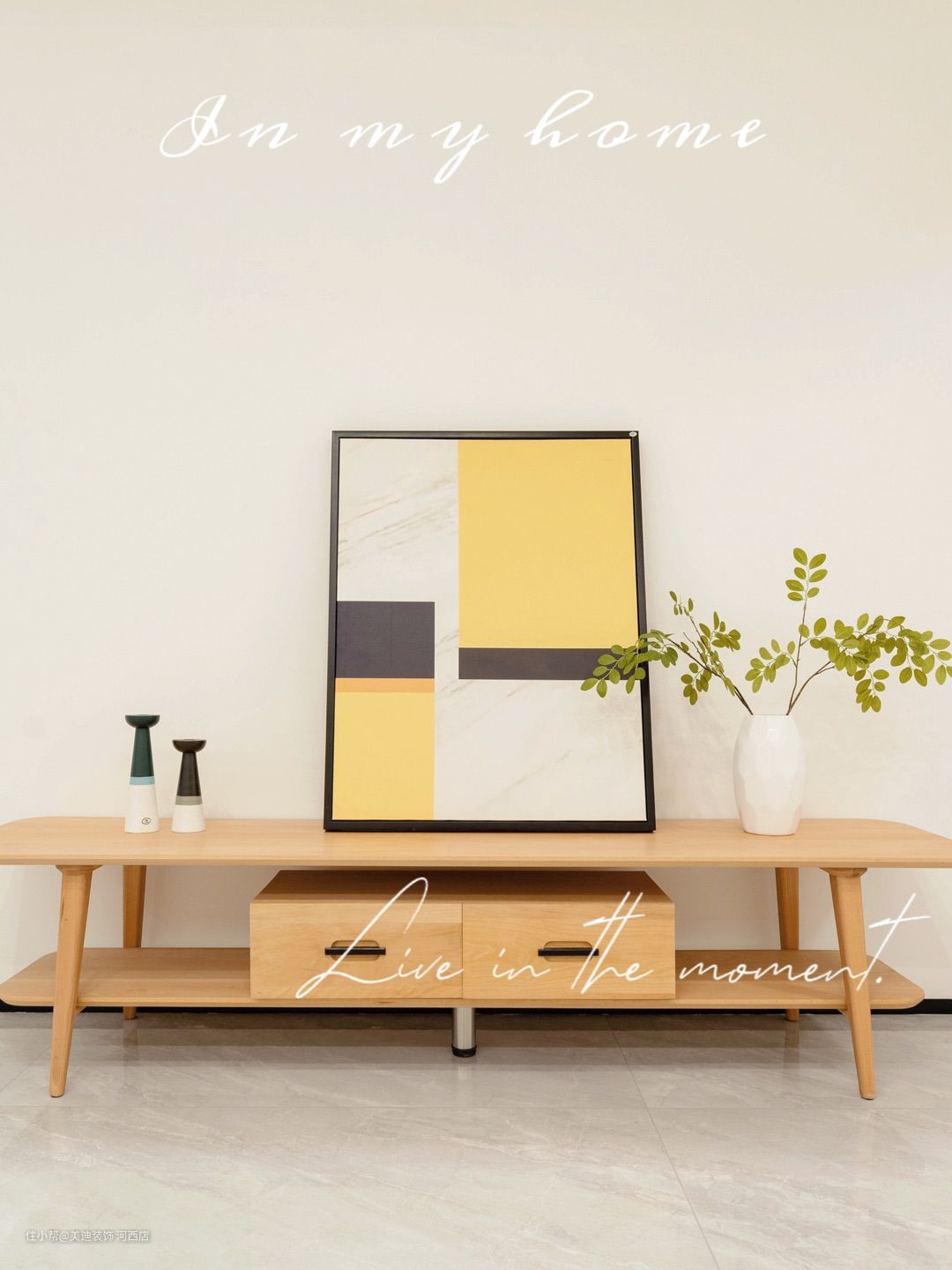 独具一格的日式原木风婚房,奶白沙发搭配跳色挂画,简单又独特