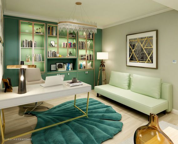 书房的书柜风格也和客厅保持一致,同样的轻奢风格。