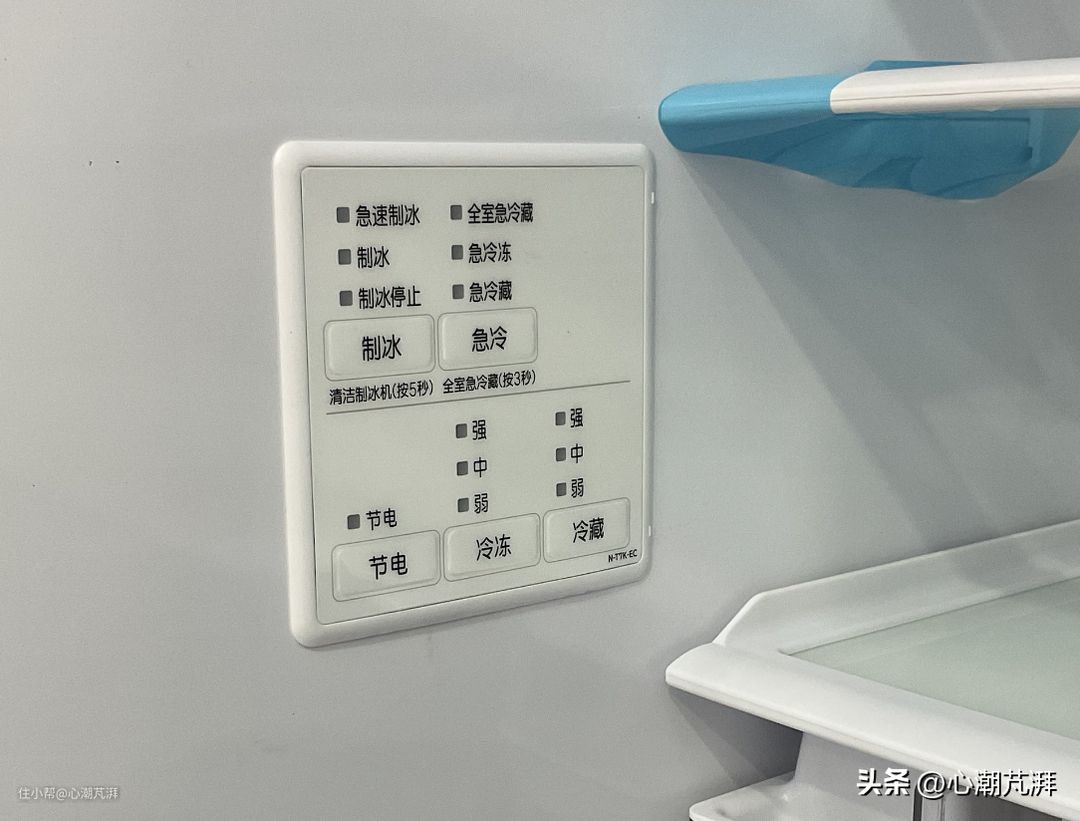 ▲冷藏室左侧有操作面板,一键控制制冰、急冷、节电等功能。