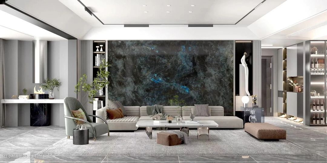 幽幽蓝光搭配奔放的石面纹理,在光线下恰如其分的呈现出各自的姿态,谁能拒绝这样的高颜值家居。