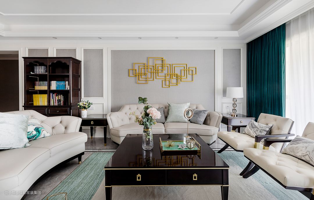 ⬆以上两个案例同样选取了对比性较强的沙发,轻奢风擅长运用绒面元素,高饱和的绿与高饱和的蓝在轻奢风中具有压倒性的优势迅速占据空间的视觉中心点,质感极佳的绒面沙发简直就是锦上添花。