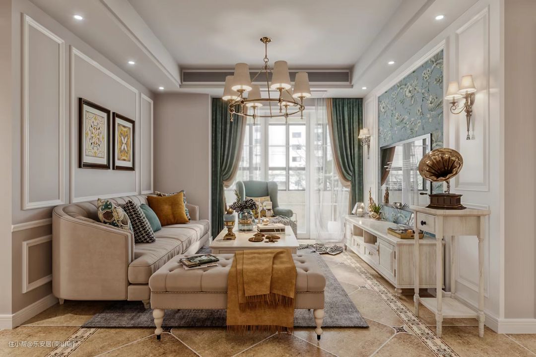 根据设计师的免费上面量房和不断修改设计图,设计师确定了这次设计的基调为【美式田园风】,通过护墙板、壁纸、壁布、仿古砖等材质和复古沙发、实木家具等家具,打造出复古自然却不拥挤的空间,一起来看看。