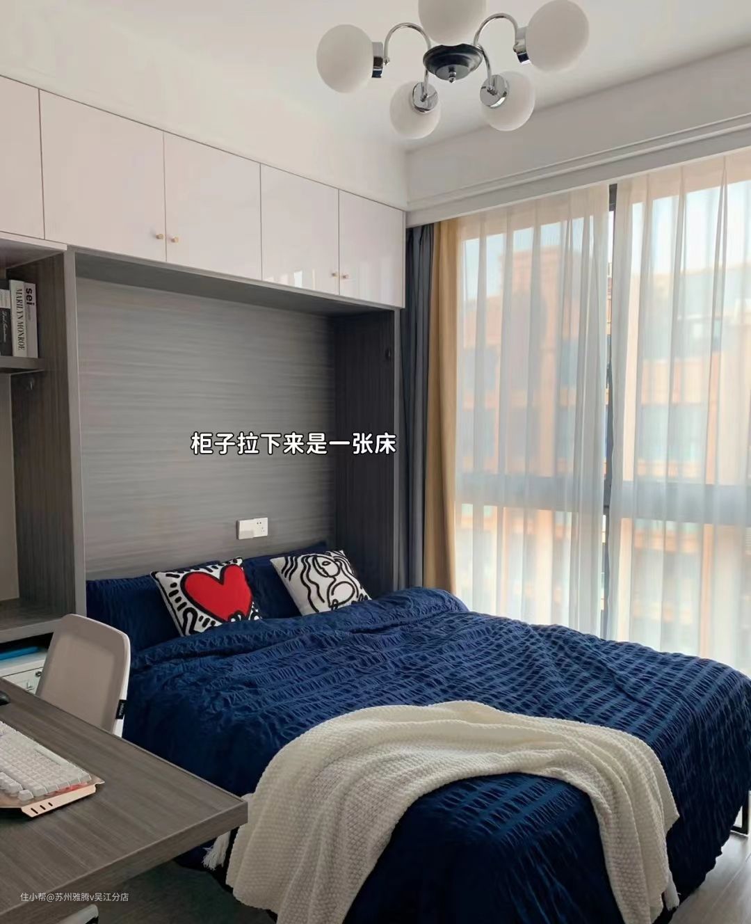 对于居住空间要求较低的家庭来说,次卧如果只是打造成客卧,它使用率へ就会显得很低,大多数时间都处于空闲状态。可以打造成书房,丰富空间的功能性,再利用定制家具融入折叠一床,提升空间的灵活性,满足日常不同种类的迎需求。