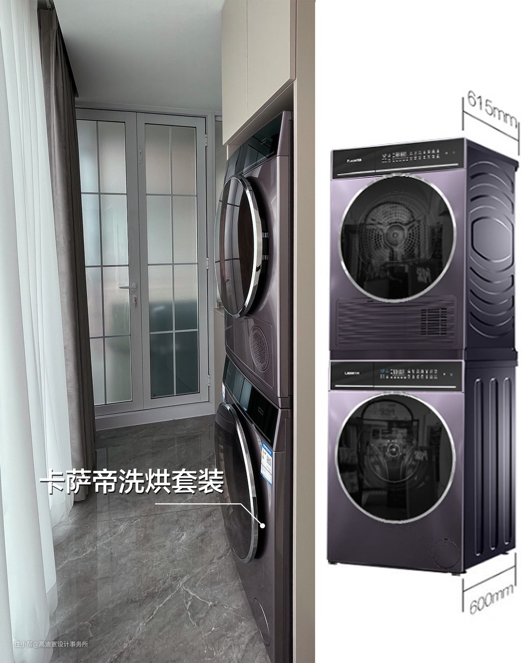 ☑ 【洗烘套装哪家强】选洗衣机、烘干机,内嵌更适合洗烘套组或一体机,套组机机身可以完美嵌合更稳固,同一品牌智能操控和开门、电源线等都更统一,视觉感会更好,便捷度会更高。一体机就不用说了,找好位置和布线就行。当然如果全屋厨电选同一品牌智能远程操控会更便捷高效。推荐卡萨帝的纤诺洗烘套装,10KG大容量全自动空气洗护理,Hybrid混动速干,将衣物保护如初、焕亮如新。3层线屑净滤和56°烘干除菌净螨,衣物舒爽更健康。另外,卡萨帝采用的FPA直驱变频电机精准控速,平稳低噪,置入开放式空间完全不用担心噪音干扰,安心更放心。