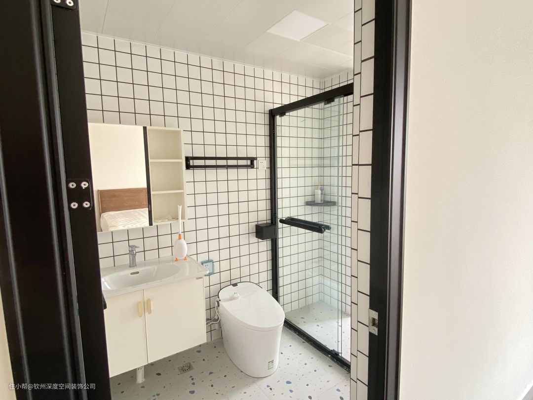 卫浴以浅色为基地色,空间看起来更明亮一些,空间采用干湿分离,选择玻璃进行一字型隔断,通透又美观。浴室柜悬空设计,搭配上可收纳的浴室镜,空间储物功能也是十足呢!