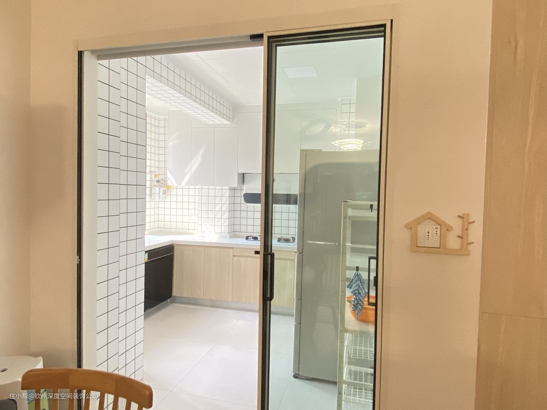 极窄边框玻璃门联动各个功能区,让忙碌在不同空间的一家人有声音上的交流,视线上的互动,在琐碎的日常里建立亲密无间的联系。
