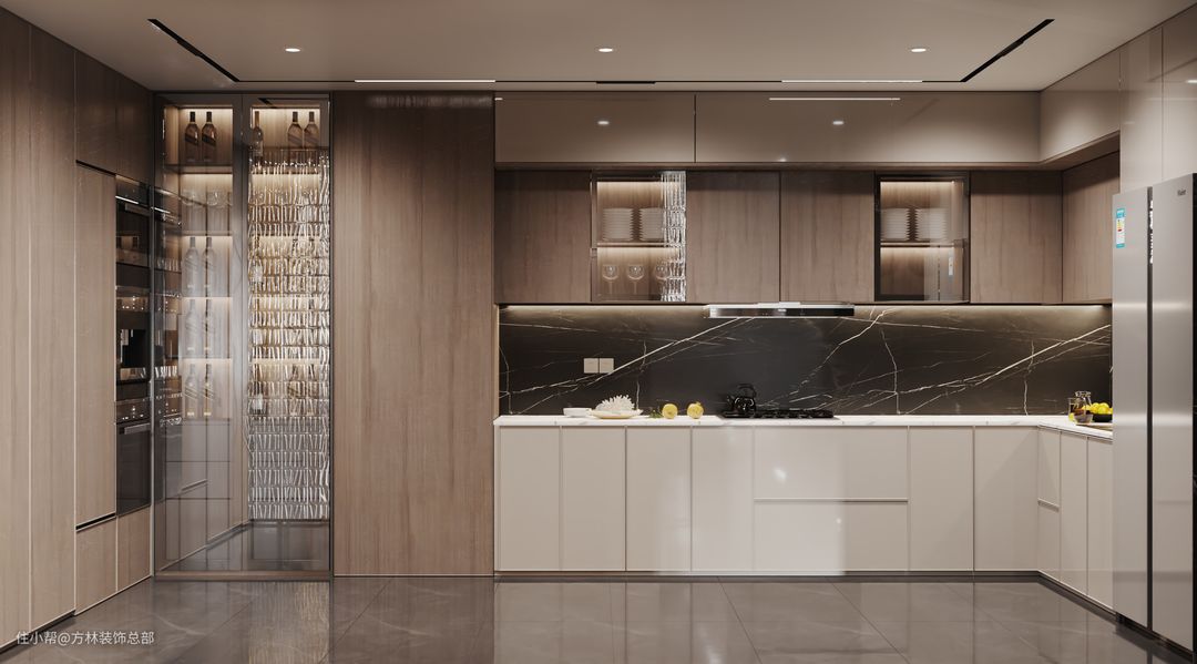 除了折叠门的设计,还可以将中西厨房分离,把油烟多、噪音大的中餐烹饪区与油烟少、噪音小的西餐制作区分隔开。不过这种设计方式对房屋面积有一定的要求,适合较大的户型。