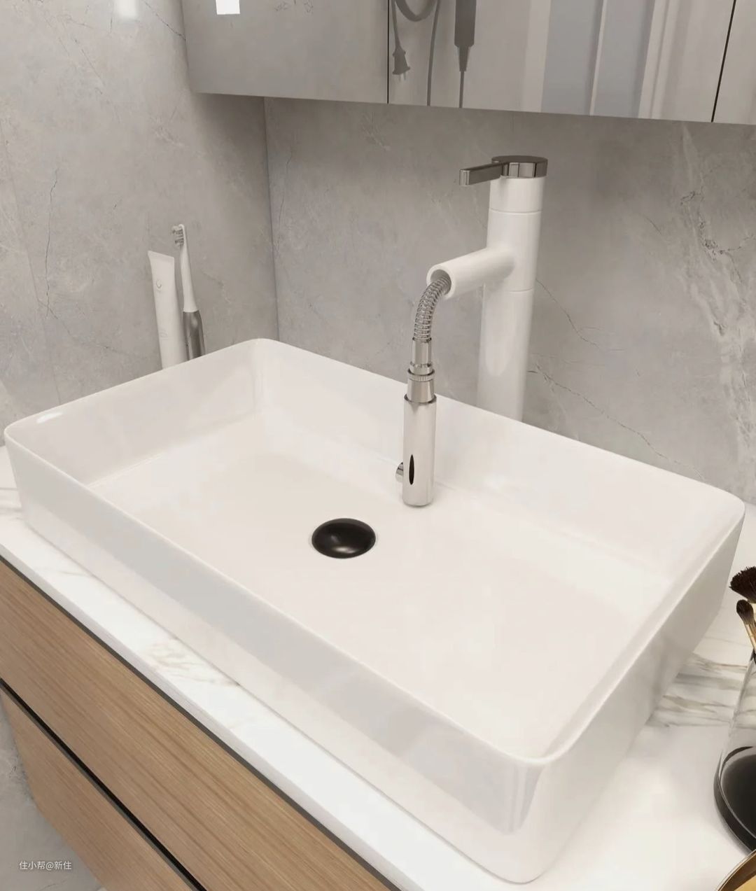 可偏偏,就还有那种喜欢开历史倒车的厂商,搞瀑布流水龙头,这玩意溅水真的很厉害,洗手都能溅一身,还是要避开。