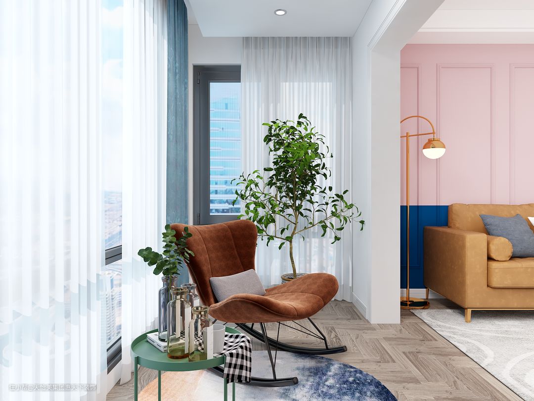 北欧风格不只有清新的绿色主题,还有更多的温柔系主题,就像是本案的主题色一般,粉色也是空间搭配不可少的一类。本案业主更多的想要做更加简单的处理。在空间的搭配上选择更多的暖色系,用温暖透亮的北欧风作为空间的基调,搭配上一些金属元素作为搭配,既温暖又有质感,品质感更强