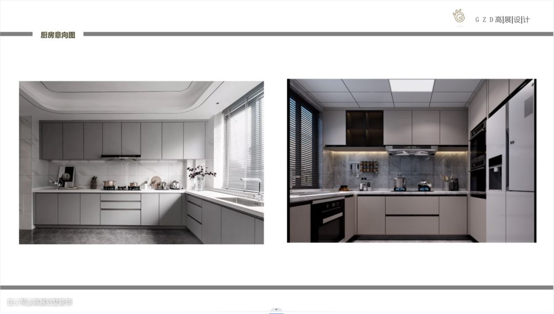 一层空间比较大,利用率很高,但是不足的是楼梯踏步比较多而且很窄。设计师将一层规划为客餐厨、客房以及客卫,在电梯厅增加了鞋帽柜,收纳一些换季的鞋子。将门厅打通呈L型,因为墙面不完整,在凹处增加定制鞋帽柜,另一侧增加换鞋凳。