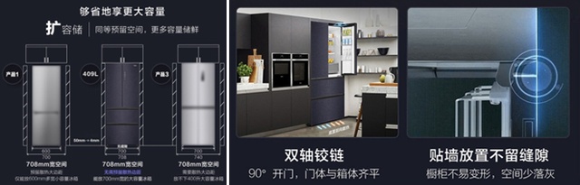②体积虽小容量却十足,409升的空间足够一家使用,家庭成员既有老人又有小孩食品的种类十分多样需要大容量的冰箱才能满足日常需求 。