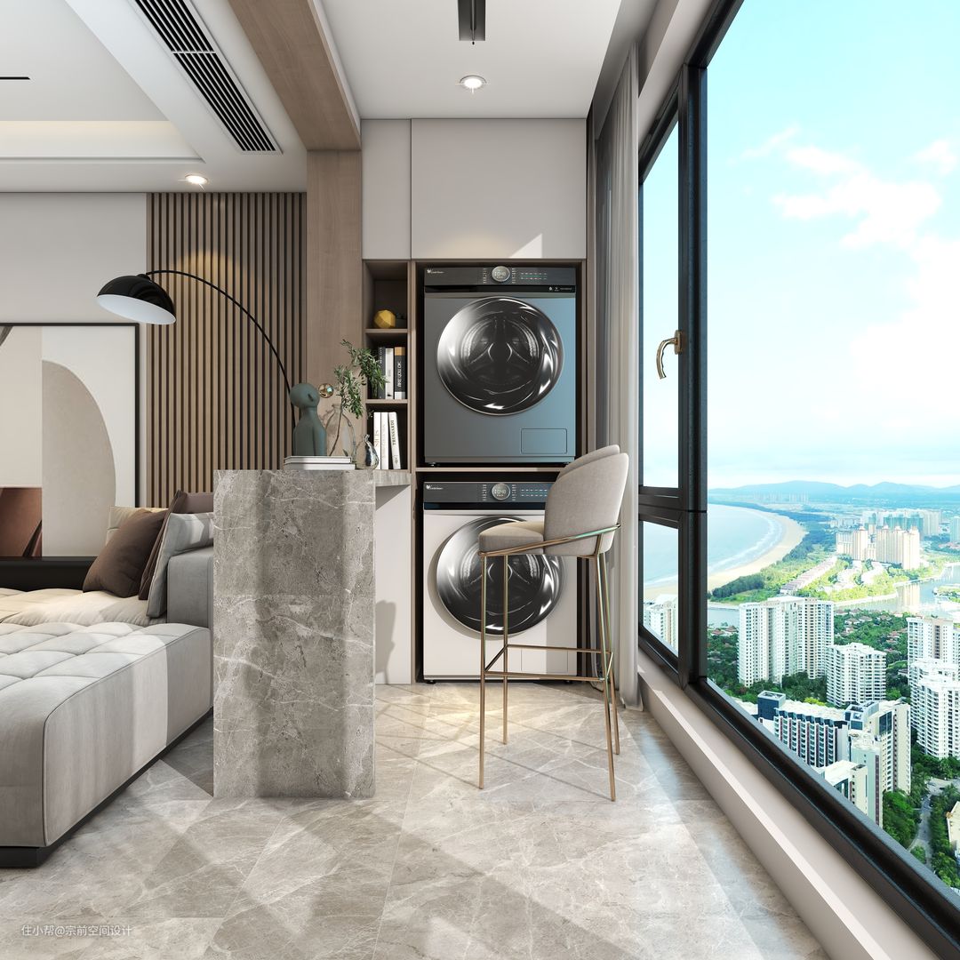 把阳台纳入客厅,增加空间面积。在洗衣区做了石材隔断,合理的设计为空间每一处注入情感,家居的极致体验显得十分重要。