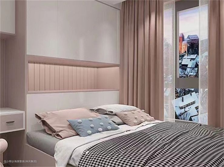 卧室采用的是现代风格 虽然没有过多体现轻奢风格,但是在卧室有限的空间里做出了多种元素,让整个空间不再感到单一