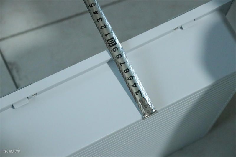 在发光板的下方位置便是它的出风格栅,类似于百叶窗,还是很漂亮的。出风格栅的长度达到了52cm,这样可以实现宽幅出风效果,大大增加了温度提升的效率。在出风格栅的旁边,设计了灯光开关键,以及不同模式的指示灯,并且有图标标识,便于用户分辨。