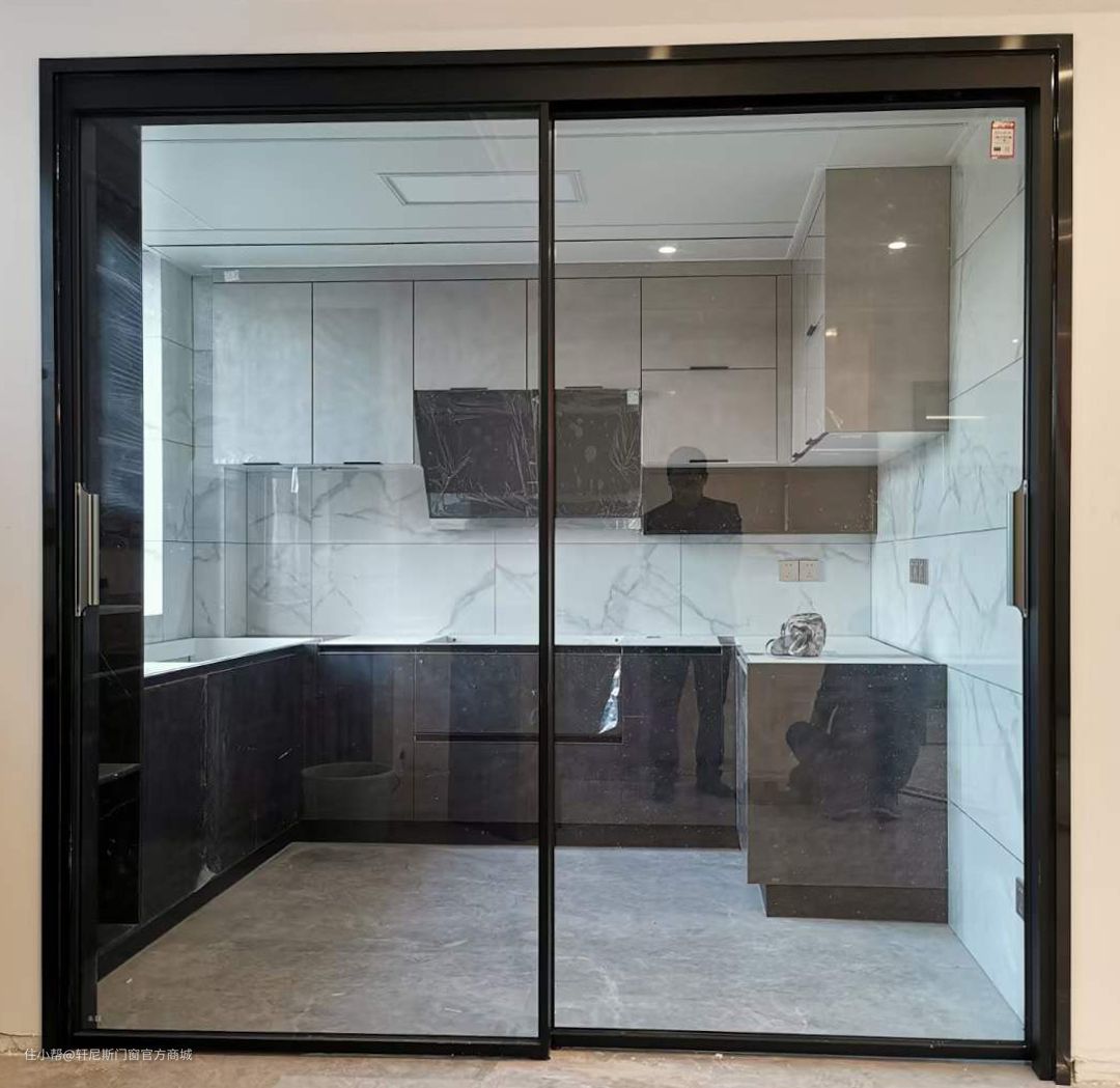 厨房光线昏暗,所以安装的是窄边设计的赛纳系列推拉门——