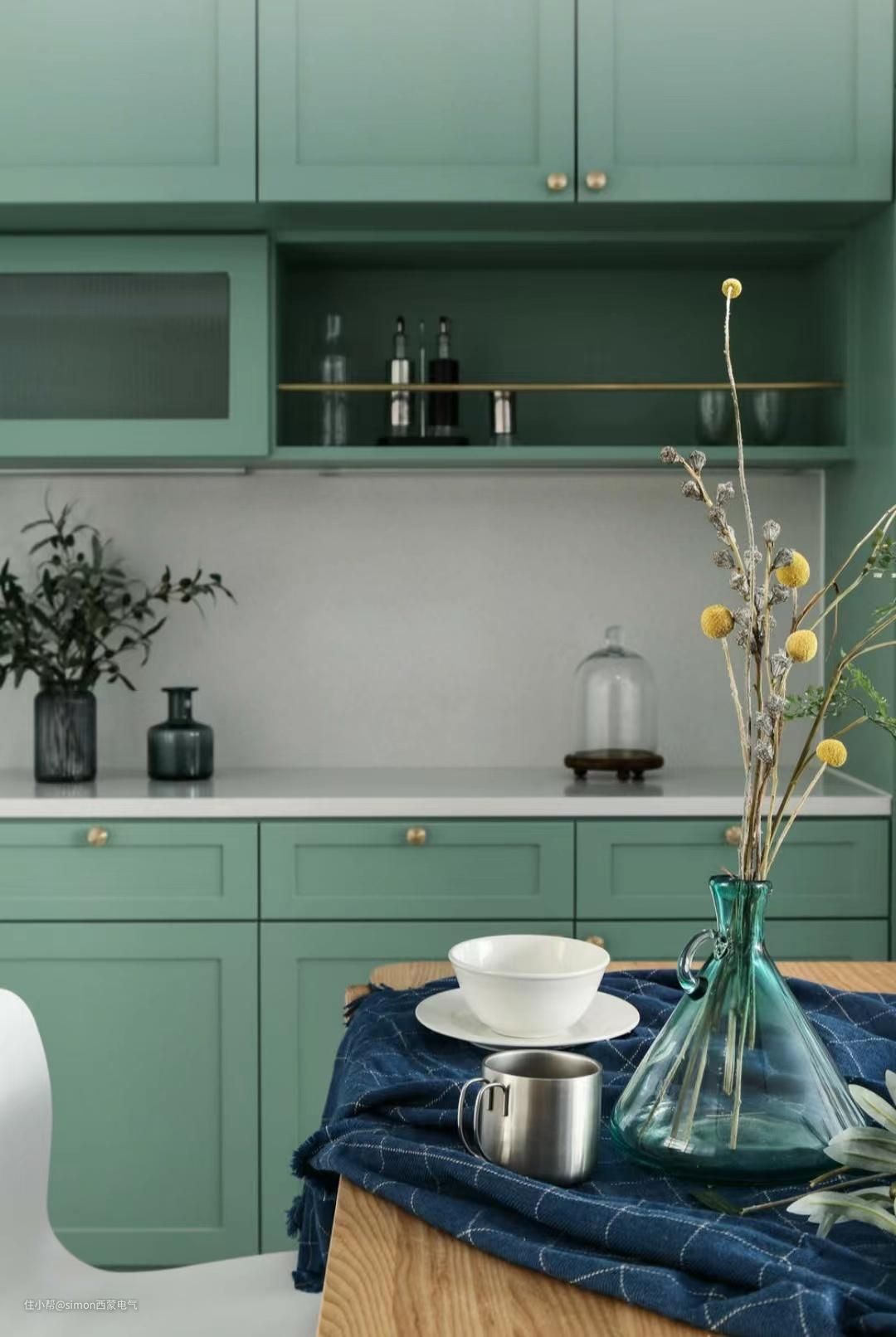 绿色相对来说比较百搭,既有活力,又有气质。搭配灰调时,有种柔和生长的氛围感。搭配白色时,更显平静自然,不疾不徐。