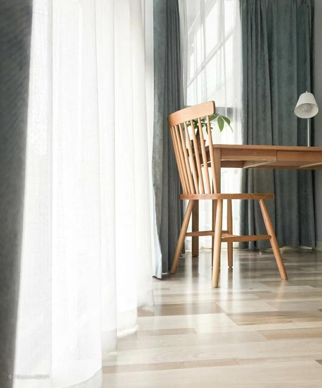 如何冲淡 “一板一眼”的沉闷?答案是让家居多一点“空气感”,给家具“减减重”。比起堆叠沉重厚实的家具,不妨多创造一些留白,让空气在家具间自如流通。比如,镂空设计+细腿支撑的家具,瞬间冲破原木自带的沉重感。