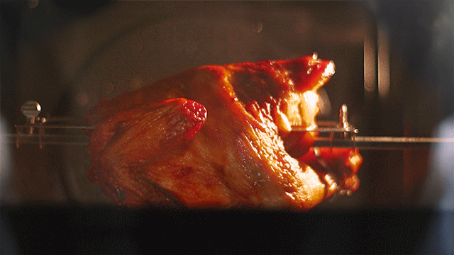 作为专业向的烤箱,自然不会缺少旋转烤功能,搭配转叉,以及40L的大空间,再大的整鸡都能挂入。这次做的是奥尔良口味的烤鸡,由于味道实在太香,以及临近中午,有些手忙脚乱,这道食材的生前影像仅有这个旋转中的片段,在烤完后,拿出转叉,放在边上晾着时候,家里人已经上手开吃了…
