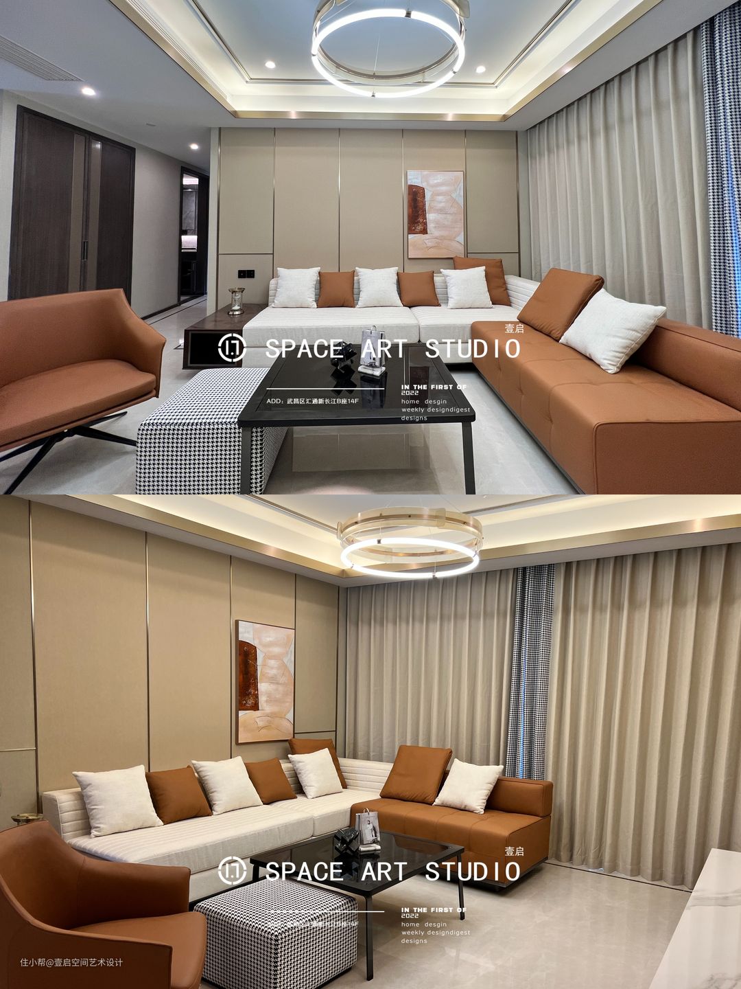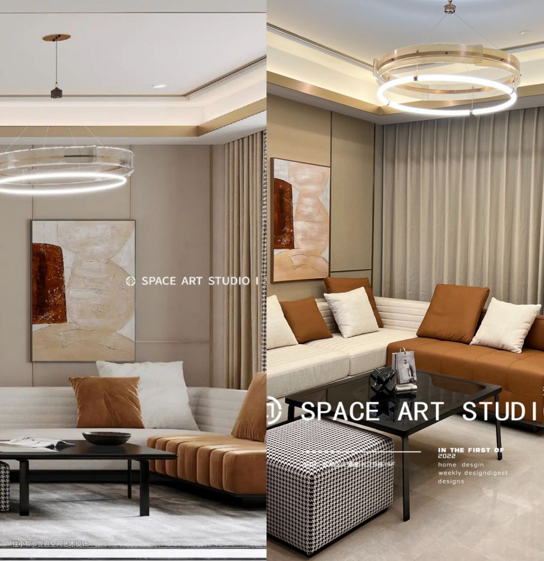 效果图出来时,屋主对格局设计很满意,要开工啦!在这期间有进行略微调整,在选材上更偏向有质感~暖色系软装的加入让整个空间凸显质感的同时更显独属家的温暖与舒适。