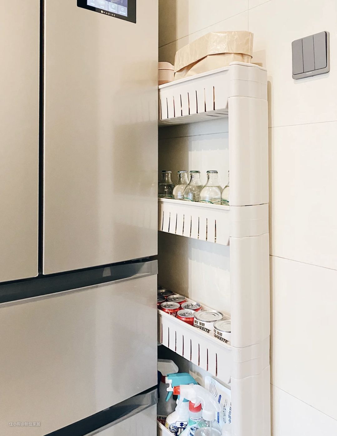也正是因为这种情况比较常见,网上有很多冰箱窄缝填补柜方案。