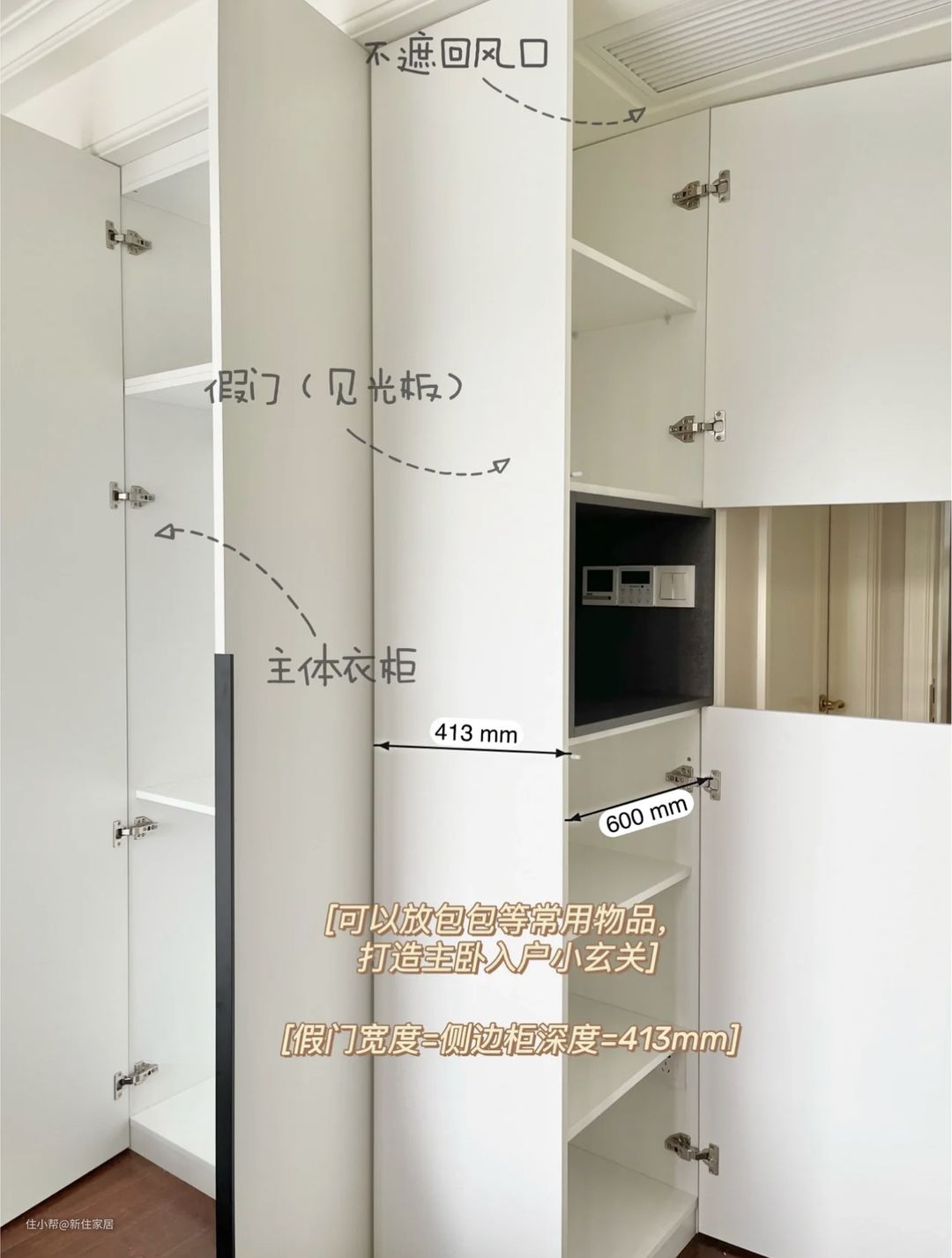 与传统的衣柜不同,将衣柜的一侧,设计成侧开薄柜,真的很惊喜。