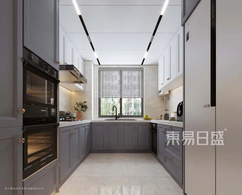 厨房的地面是客厅通铺,采用U型的动线,使得厨房空间更宽敞,提升空间利用率的同时还能方便日常生活的使用。