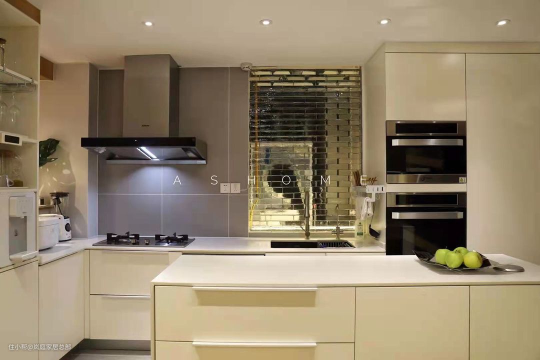 首先第一步,建议大家安装集成灶或者好的吸油烟机,可以最大化的避免油烟污染的问题。再有就是开放式厨房怎么少得了吧台或岛台呢?如果空间足够的话增加一个不仅可以扩大使用面积,还能提升家居品位。