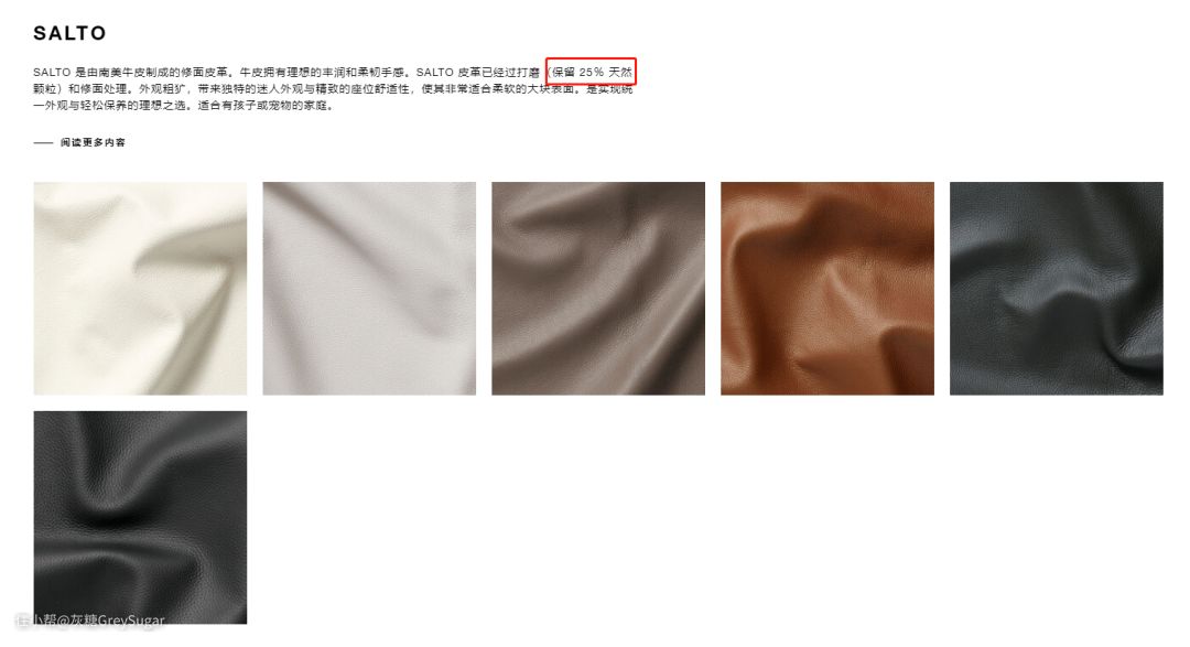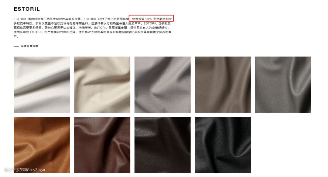 当然,全青皮也是有级别的。比如boconcept的这款全青皮,就标注了粒面保留了90%,而差的全青皮的粒面就要差很多。