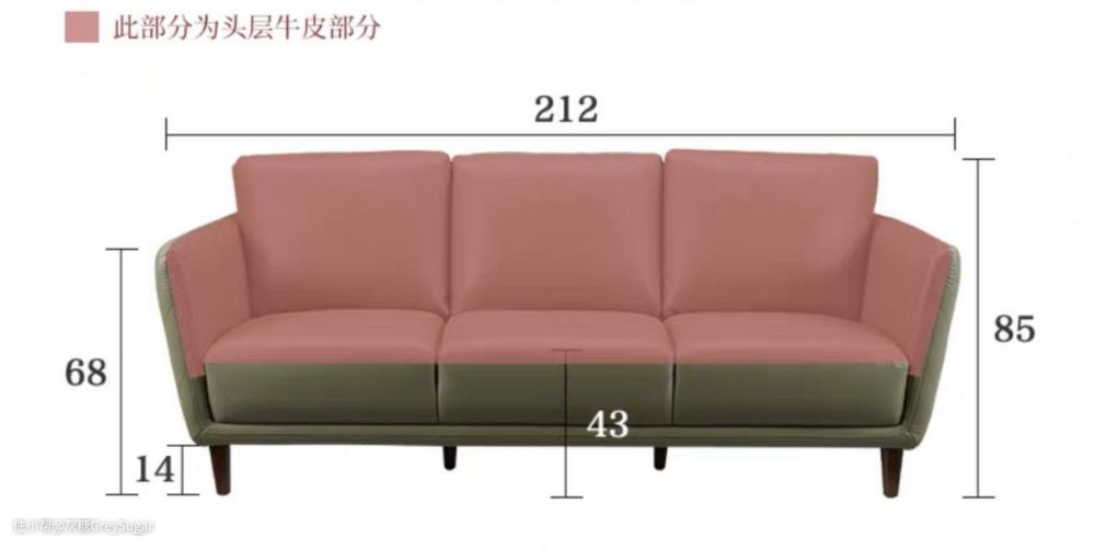 这里多说一句,真皮沙发的定义,可能和大家想象的也完全不一样。真皮沙发只要接触面是真皮,那这个沙发就能叫真皮沙发,其他地方是仿皮都行。