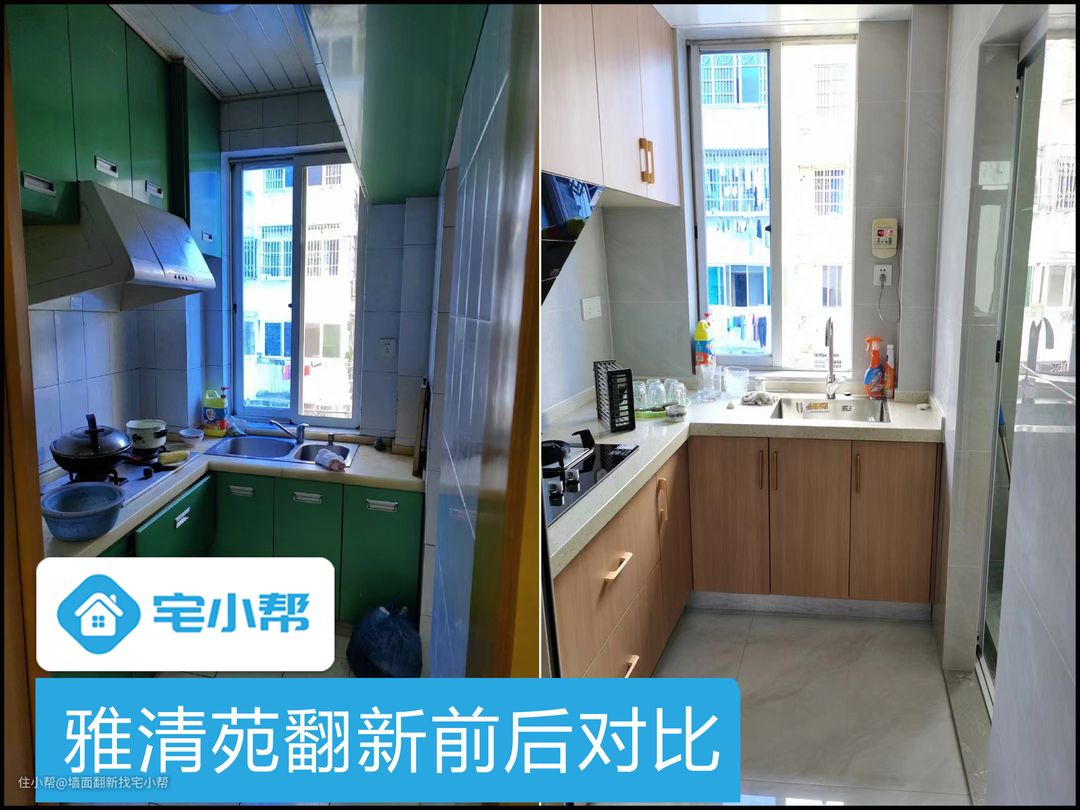 在施工过程中,墙面的效果逐渐展现,业主觉得厨房和卫生间配不上现在的墙面了,于是又决定把厨房和卫生间也改造一下。再看看厨房和卫生间改造前后的对比吧。