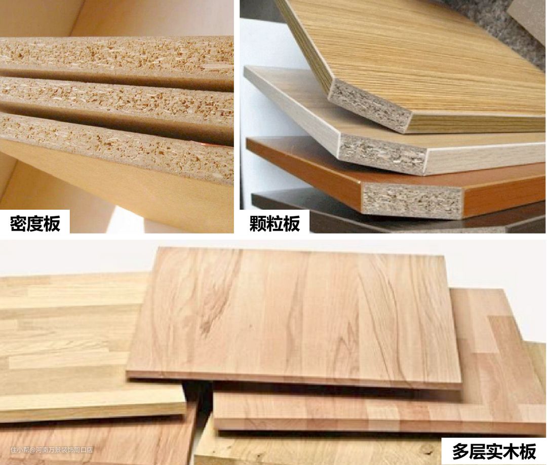 市场上的柜体板材主要分为四种材质:密度板、颗粒板、实木板、多层实木板。