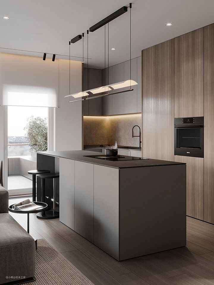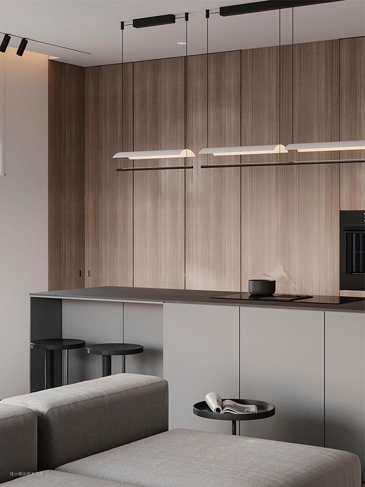 高级灰的沉稳大气,极简时尚兼备;深木纹的温润质朴,低调又有质感;搭配玄武黑岩板,色调和谐统一达成视觉上的平衡。