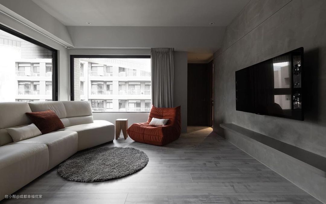 在软装搭配上,选择米色的皮质沙发,坐感舒适,米色的皮质沙发放在窗边,享受居家的惬意柔和状态,在沙发角落设置置物架,放置一幅抽象的装饰画,让居家空间住得更舒心。 在沙发的选择上,除了颜值还要考虑舒适度,作为客厅必不可少的家具,对于风格需要契合,摆放位置也是重点,需要根据家里的动线布局进行规划。 为了提升空间的格调,加入酒红色懒人沙发,既能在家里享受安逸的居家时刻,也能提升整屋的色彩层次感。