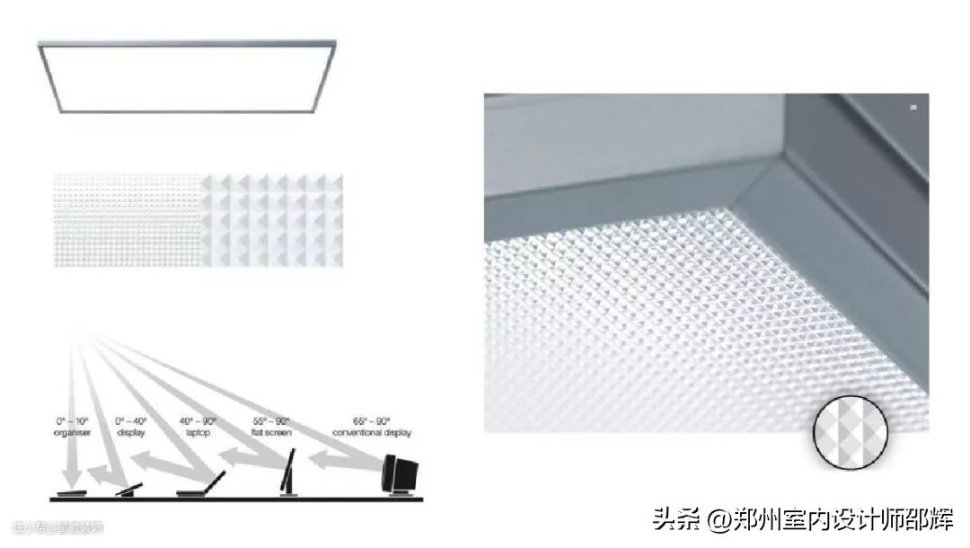 这样听起来,办公空间的需求其实挺矛盾的,它既希望能照亮更大的范围,又不希望它的光会刺到人的眼睛,所以就会有这样比较特殊的设计。