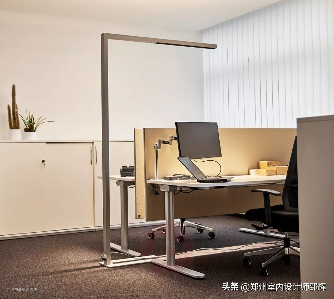 把落地灯一放,下面的桌子就够亮了,天花板上其他的灯只需提供基本够你走路的光就OK了,因此在办公空间里,落地灯经常用来作为一种补充的灯具(台灯也是其中之一)。