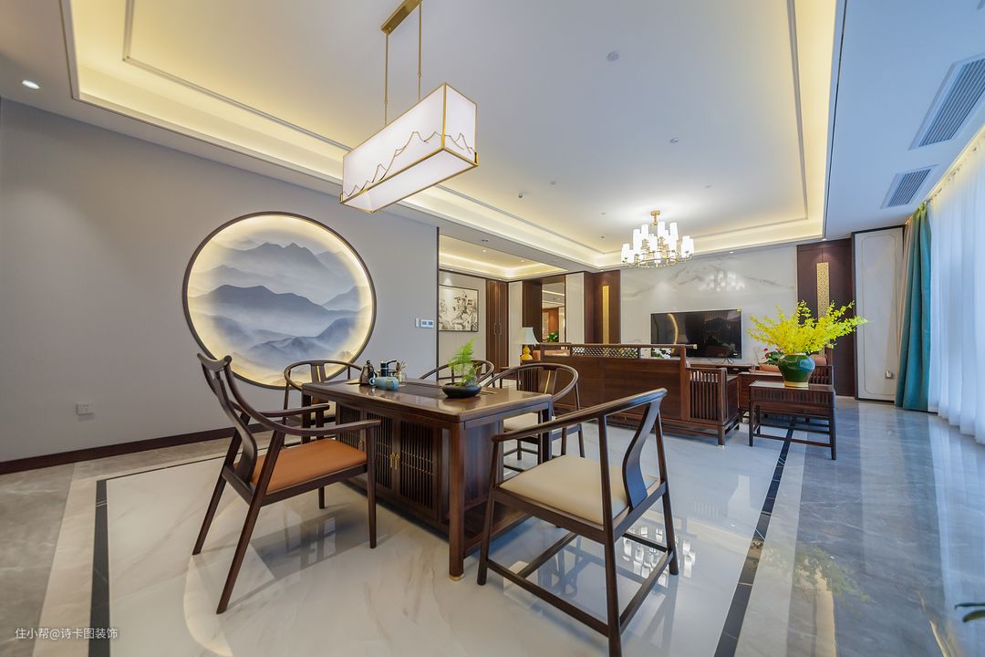 新中式既然带个新字,与传统也是有区别的,不能为了保留传统的中式元素,而忘了新,一些古典的复杂工艺、原木、名贵木材等这些带有很浓重的古典元素的东西,就尽量慎重,多在空间的布局与空间的意境上下功夫,既能保留传统中华元素,展现出业主追求的一种恬淡、修身养性的一种生活态度与境界,还能处处凸显新时代的气息,通过现代人居的生活特点,对中华传统文化进行“点到即止”糅合;当然也可以理解为是对现代生活习性的“画龙点睛”式搭配。