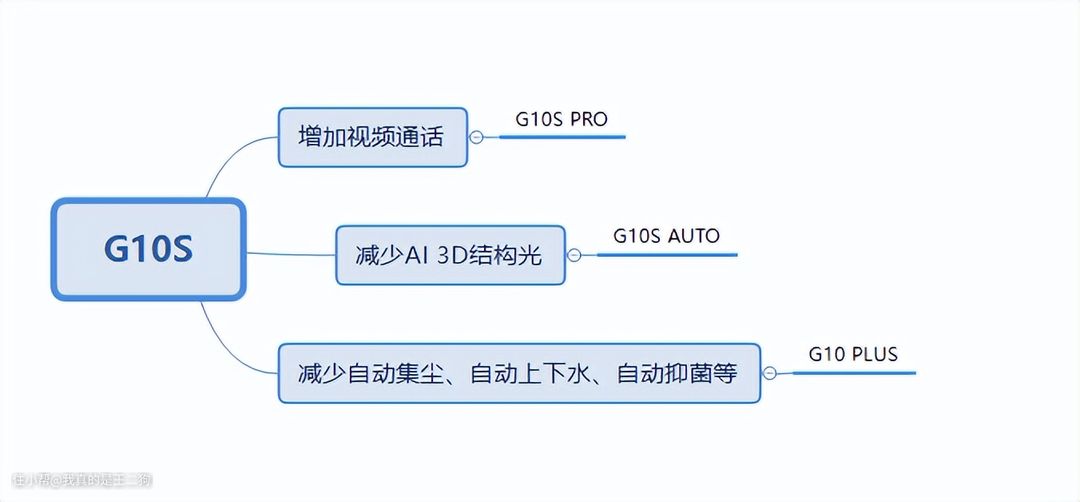 二狗大概做了一个图,基本上目前四款主流型号都是在G10S功能基础上做的增加。G10 PLUS虽然是G10的升级增强版,但是说到底也是G10S去掉自动集尘、自动上下水和自动抑菌功能的版本。最后二狗谈谈几款型号的选择建议吧。