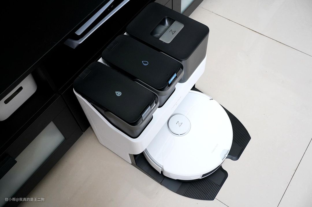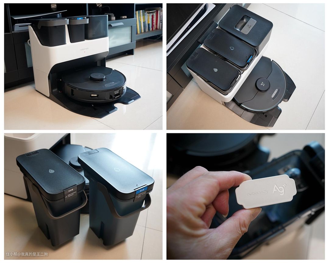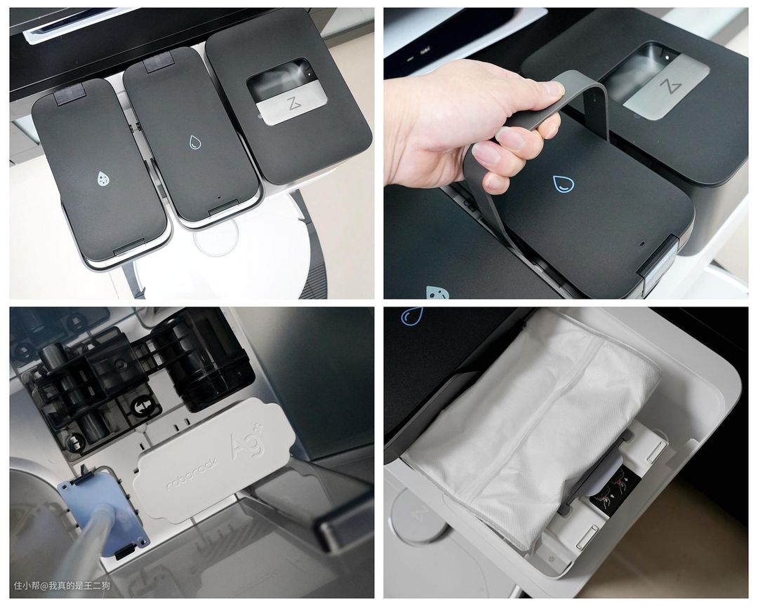 G10S AUTO的基座顶部三个独立的模块搭配有相应的说明防止误操作,角度位置不对就不能放入的防呆设计可以杜绝错误放置的可能。提手采用了可调节隐藏式设计,方便使用的同时也便于收纳。G10S AUTO也支持加装烘干和自动上下水模块,可以让懒人彻底解放双手,清水箱和污水箱的处理都无需人工进行操作。清水箱标配有银离子模块,全链路除菌更加安全放心。自动集尘可以实现每两个月进行一次更换,对过敏性鼻炎用户十分友好,同时也减少了频繁处理粉尘类固体垃圾的烦恼。