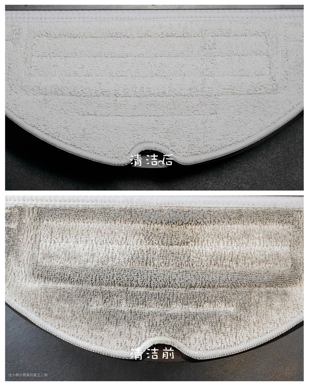 自清洁可以轻松的完成基站和拖布的清洁,让双手得到解放。无需自己进行清洁的拖布,通过自清洁能否彻底清洁干净啦?实测清洁前后的对比,可以看到差别还是十分明显的。机器自清洁后的效果可能和人工清洁有差,但是总体的表现足够令人满意。