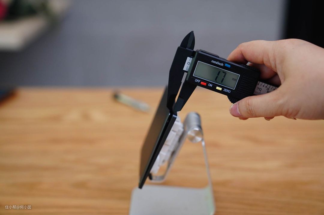 金属质感之绝,不管是表面处理工艺还是手感,都非常nice,如果不是我钱包受限,我一定全套撸回家,妥妥的。照片无法展现它到底有多薄,我勉强用卡尺卡了一下,手工测量有误差,供参考,开关面板侧面,最大角度处是1.7mm。