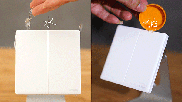 大家记得荷叶上的露珠滚来滚去的样子吗?珍铂系列丝绒白也具有类似的疏油涂层,我入手了一个双开单控用在厨房里,因为几乎每个家庭厨房的开关都会因为多油烟的环境,导致各种脏污不堪,还很难清理,不过用上一个施耐德电气珍铂荷净系列的开关,这个问题就可以避免了。