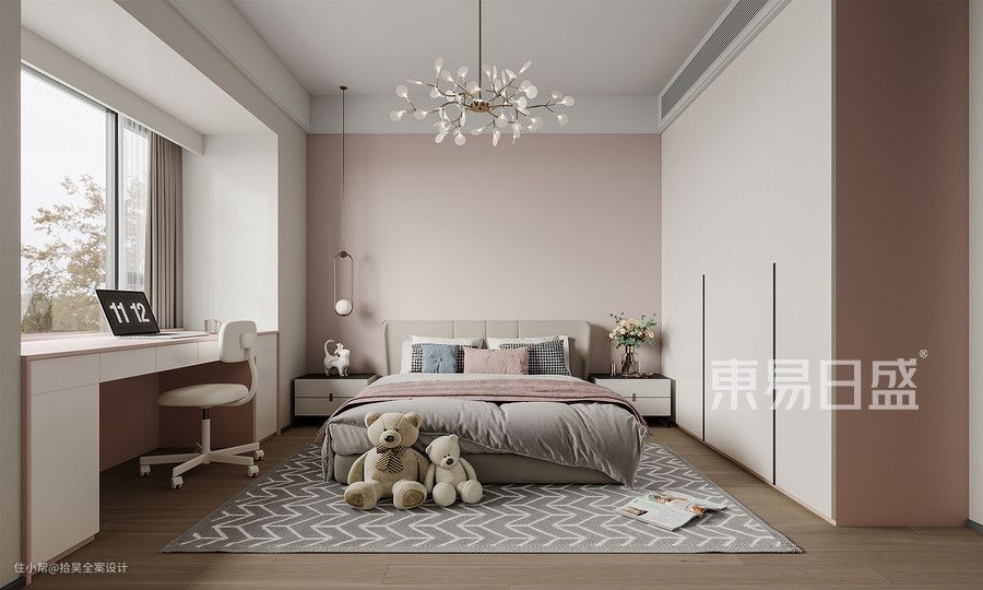 从名字看,这是一种大自然的色彩,带有奶油色调的淡粉,偏暖色,是近年来少女系卧室装修热门的色系之一,对于喜欢粉色调的女主,选择这个颜色作为床头背景色,肯定不会错的。