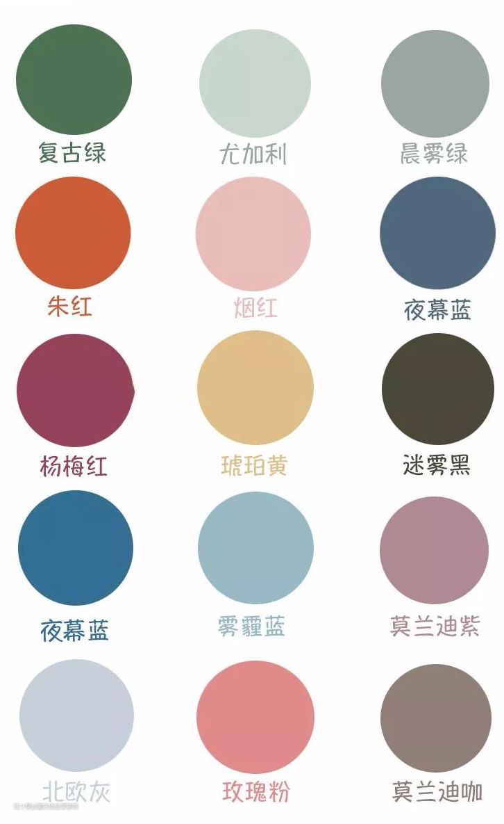 饱和度、明亮度低的色彩往往能给人一种高级感,并且不易视觉疲劳,和其他物品搭配也会更加协调,例如近年来流行的复古绿、雾霾蓝、朱红等。