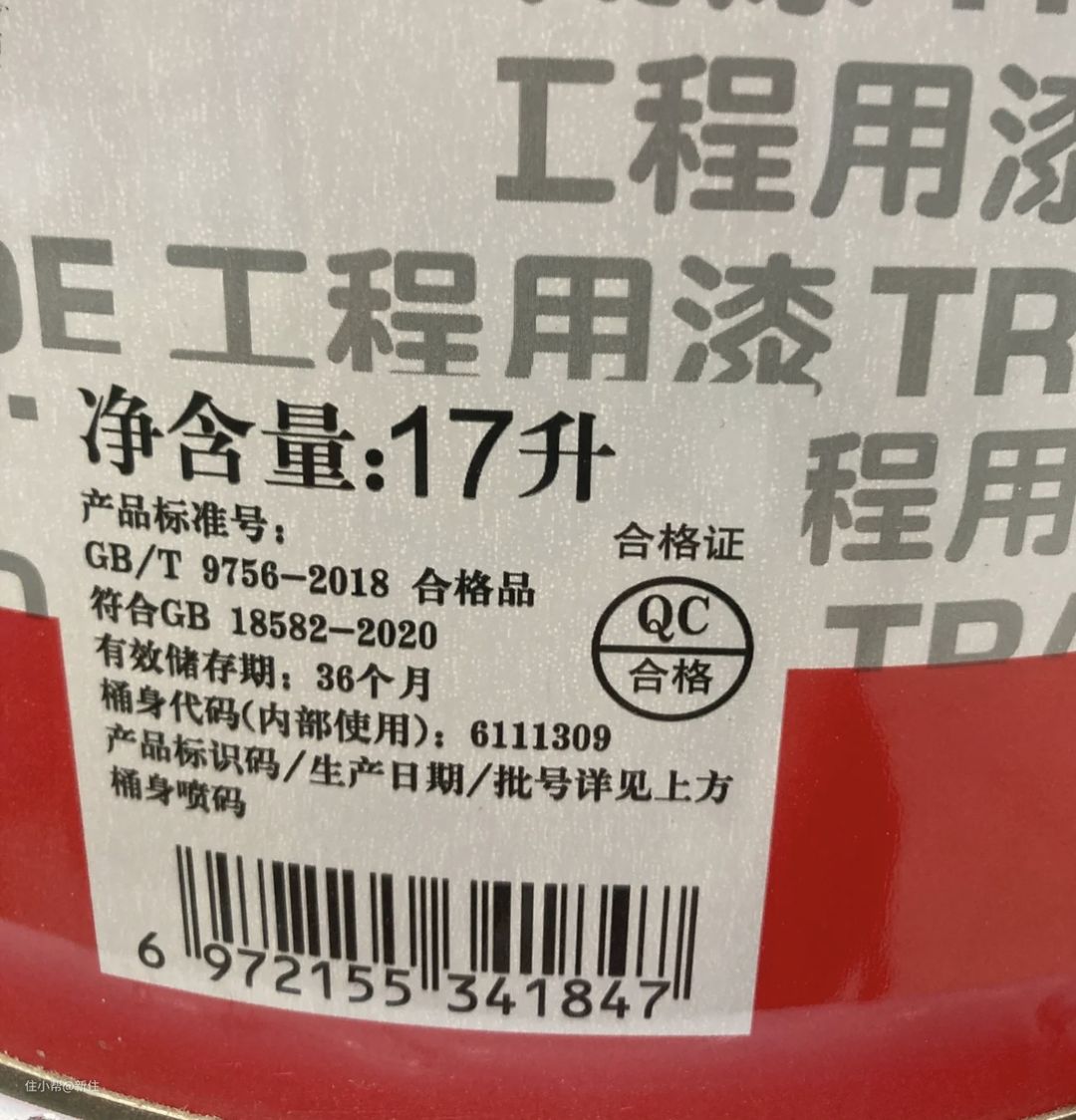 所以,我们挑的时候,还需要看标签,只要执行标准是GB/T9756-2018,质量等级是:一等品或者优等品。就乳胶漆的性能来说,就差不了。