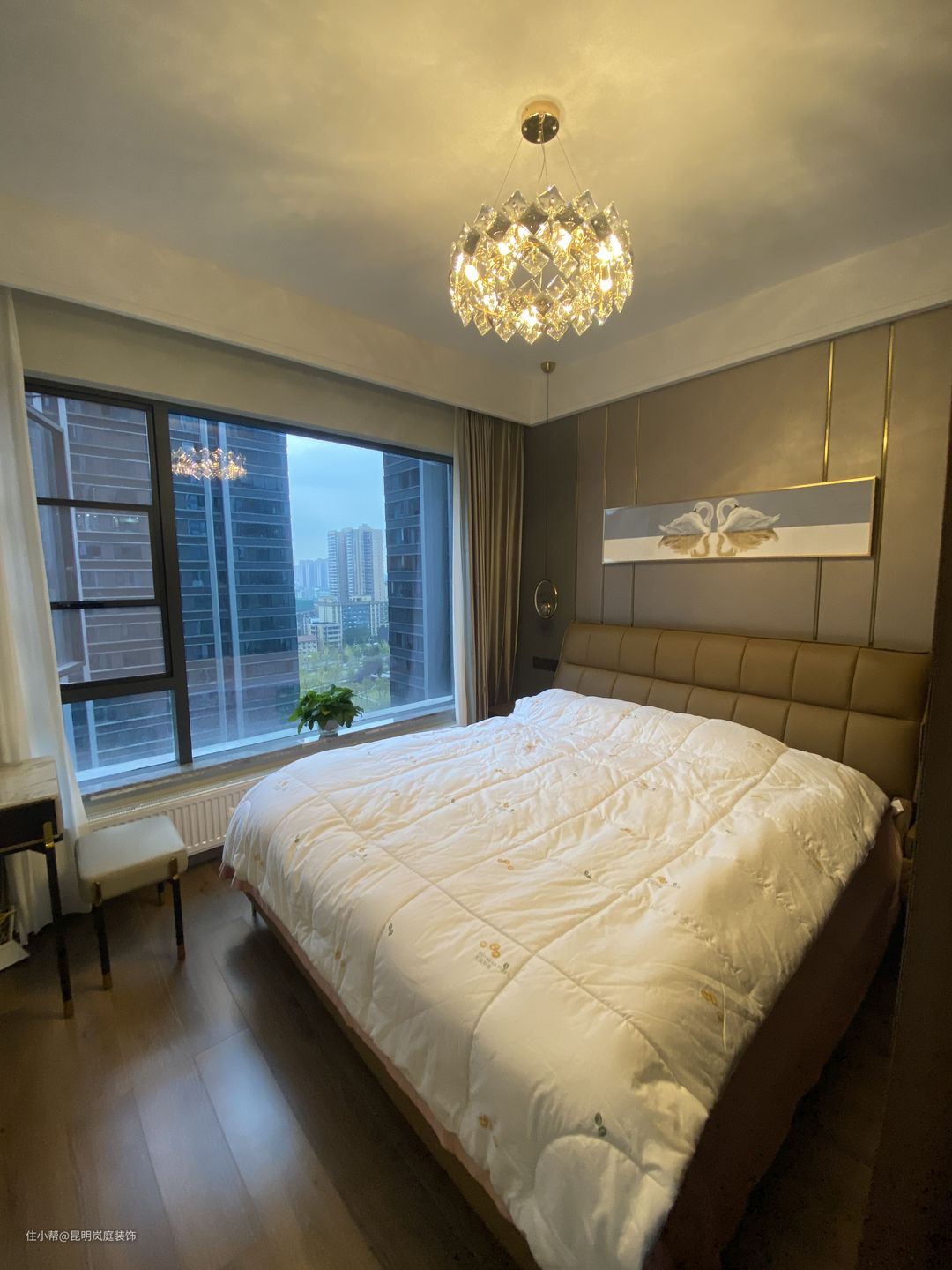 卧室的飘窗没有拆除,所以不能做落地窗设计,但是该户型楼层还不错,所以采光度没有影响。