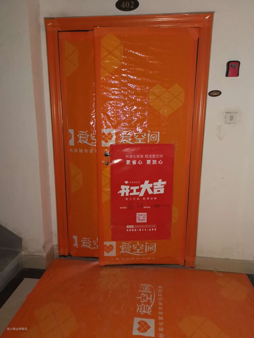 施工进场第一步:成品保护;入户门窗,电表箱,燃气等等都要粘贴保护膜,门口安装临时密码锁保护装修钥匙,里侧管道缠隔音棉,减少后期流水噪音。