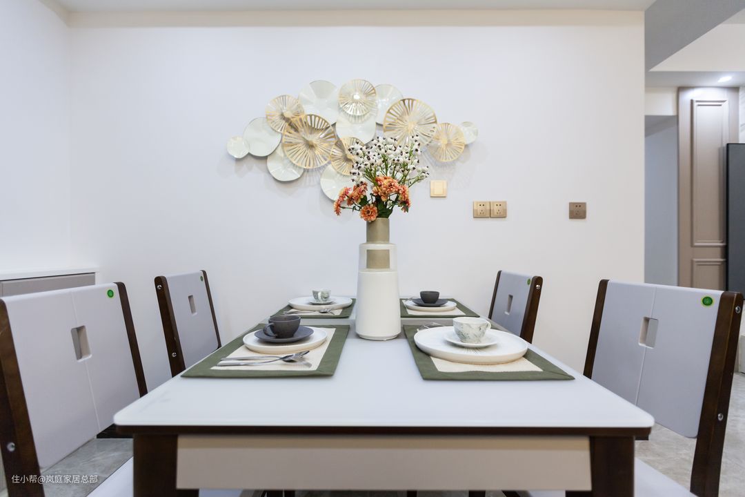 白色的矮柜餐边柜降低视觉重心的低矮度家具,有放大空间的效果,使空间的视野更加开阔。 桌上的装饰、茶具甚至餐具都是体现中国风的细节之处。