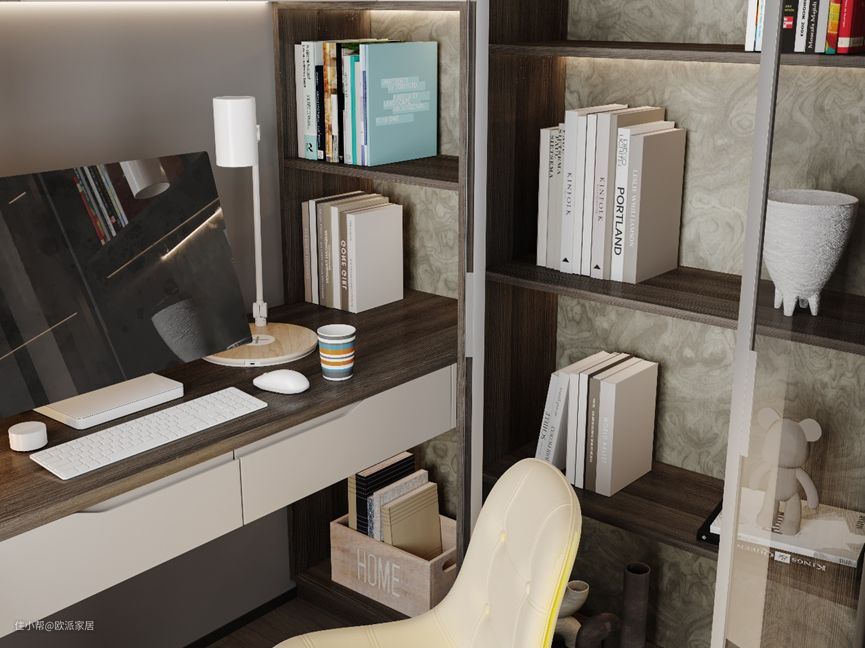 次卧做成榻榻米,床头做L型到顶书柜,减少卫生死角的同时,增加次卧的收纳能力。平时除了待客以外,还可以用来做书房使用。