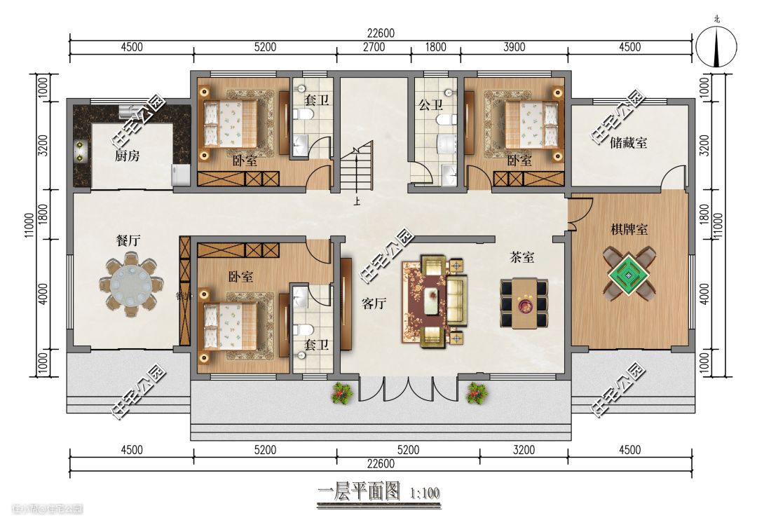 东侧为棋牌室,一家人在闲暇之余打打牌,也不用担心会影响到需要休息的家人。
